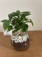 箱を受け取って軽いなあと思いましたが、開けてびっくり。鉢の外に土が1/4は出ていて、コーヒーの木が半分以上抜けていました。枝や葉は傷ついていなかったので、なんとか植え直してリビングに飾る事にしました。きっと配送中に倒れたんだろうなあと思います。bloomeeさんに落ち度は無いのかもしれませんが、倒れにくい梱包(鉢の下に重しを入れる)とか、倒れてもハイドロや植物が崩れないように工夫が必要なのかと思います。コーヒーの木自体はツヤツヤの葉で可愛いです。ハイドロは久しぶりでコーヒーの木も2度目。頑張って育てていこう思います。