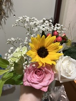 初購入。ひまわりの入ったボリュームのある花束で満足です。届くまでどんなお花の組み合わせが分からないので楽しみに待っていて良かったです。