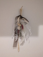 アンティークっぽい色味もリボンもかわいくて、麻紐がついてるのも壁掛けに便利で助かります。大事に飾ろうと思います!