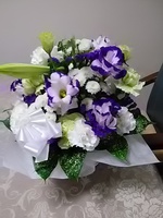 【お悔やみ・お供えの花】お供えの花束(青・紫)Mサイズ