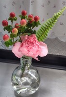 一緒に入っていたお花は、大きなバラ一輪とグリーン。 お花に関しては いつも思いますが、短すぎです。花瓶も買ってるんだからそれに合う長さで届けて欲しいなぁと思います。一緒に届いた花瓶に生けてもバランスが悪すぎると感じましたので、別の花瓶に生けました。 正直、…なんだかなぁ~…という感じです
