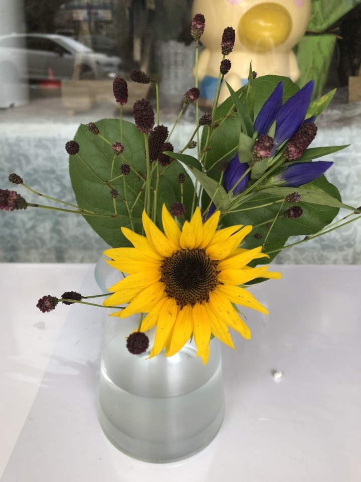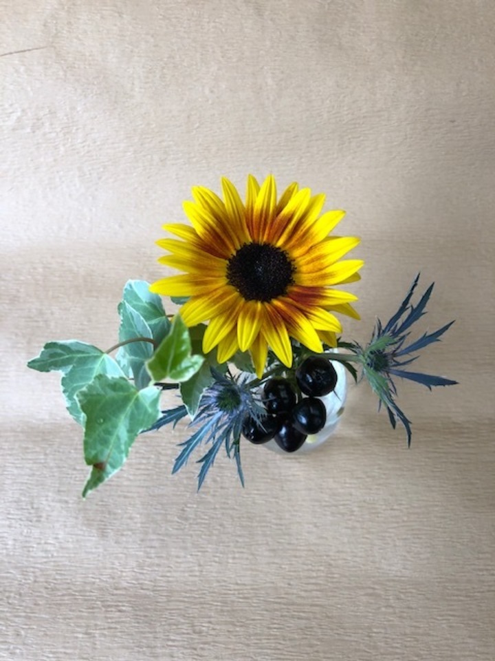 ■テーマ、アレンジに込めた想い ひまわりとガーベラとトルコ桔梗のブーケ