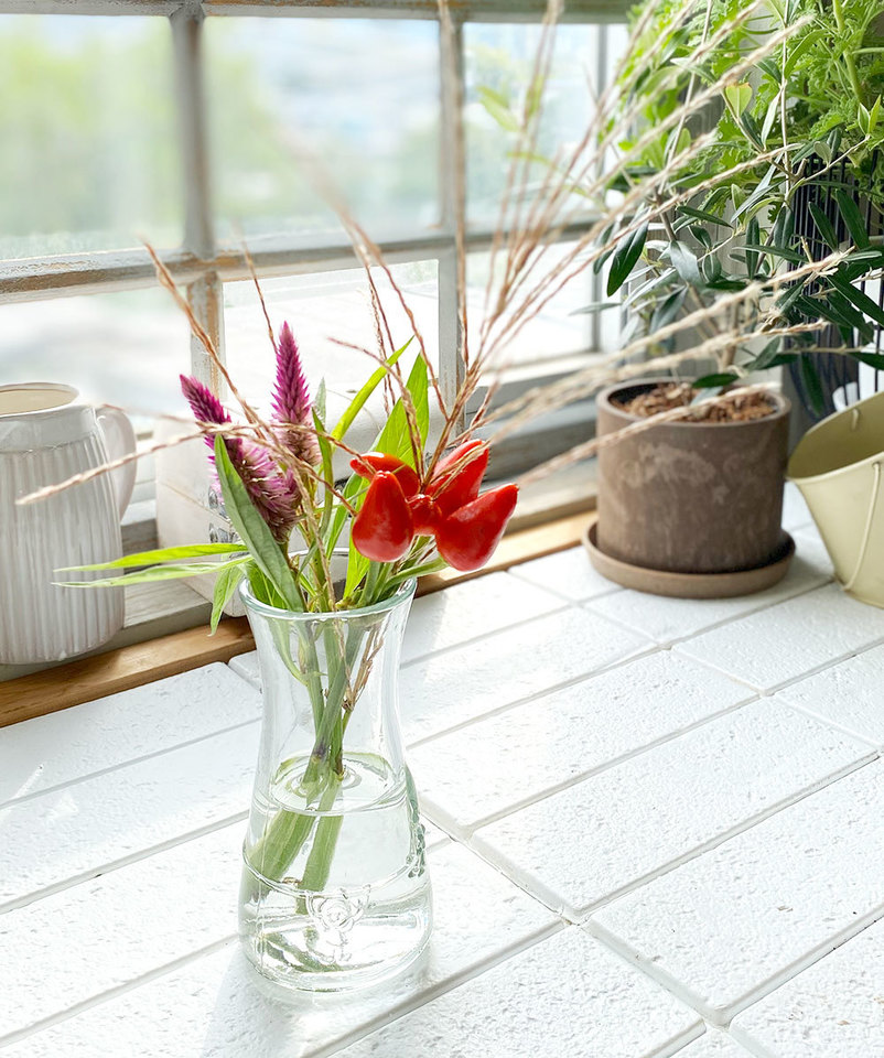 お花を花瓶に入れる前に茎の先を少しだけ切ってあげることでお水の吸収も良くなります。