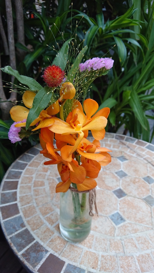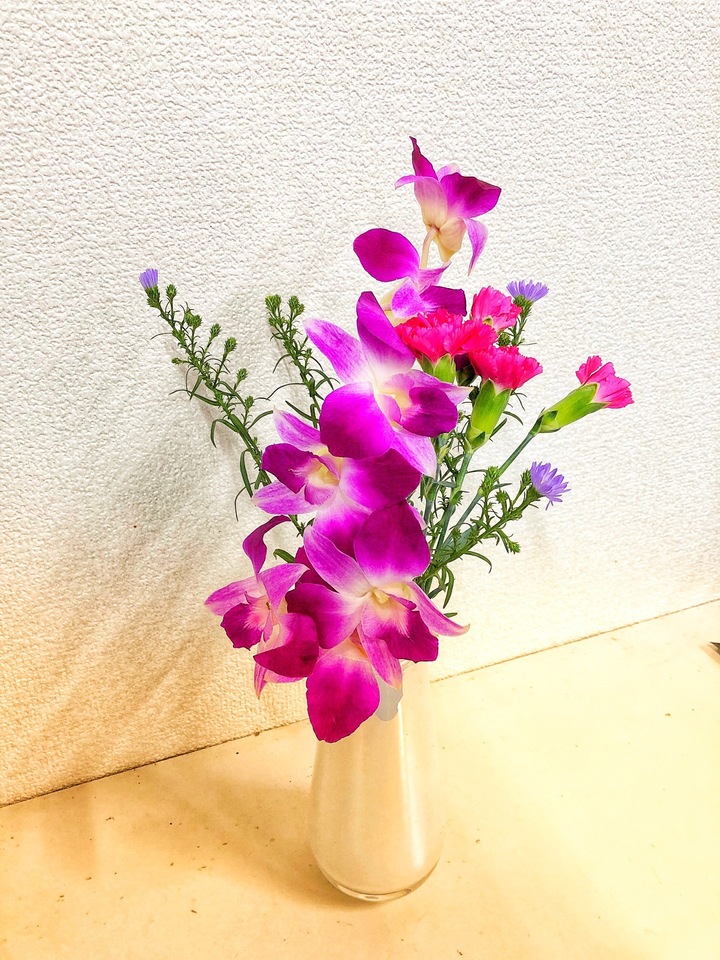 ■お花の特徴、お手入れアドバイス こまめに茎を切り、お水を取り替えてあげて下さい。 デンファレは持ちが良いですが、下から順に咲いていくので、萎れたお花は取り除いて下さい。 ガーベラは茎が腐りやすいので、花をいけるときは水の量に注意が必要です、ガーベラだけを飾るなら水の量は1〜2センチが◎です。