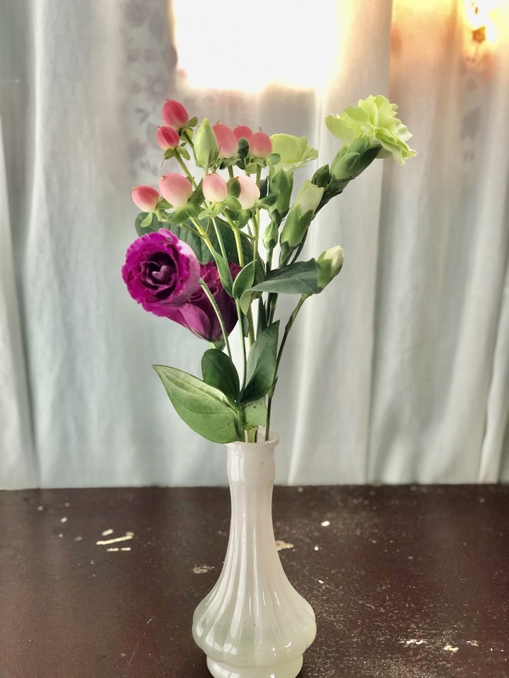 トルコキキョウは配送中に形が崩れていることがありますが、花瓶に活ける際に手でそっと形を整えてあげてください