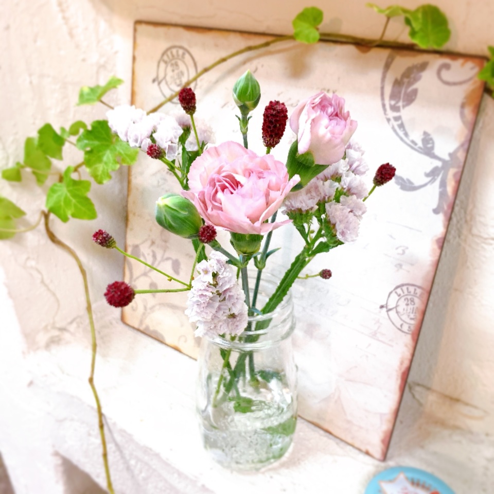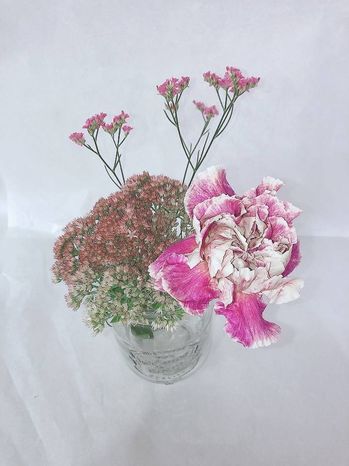 日本でも古くから馴染みのある花、ナデシコ。 カーネーションの元になったお花で、柔らかな雰囲気が撫でたくなるような可愛さです☺️ 他のナデシコと比べ葉が肉厚で艶があるので高級感があります! 葉が水に浸からないように余分な葉はとってあげましょう。