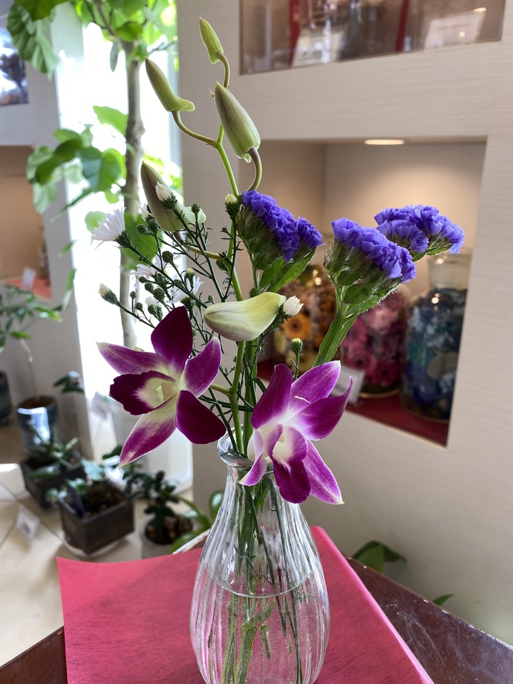 花たちは皆様の所に届くまで、長旅をしてます。早めに水切りをし、花瓶で飾ってあげてください。また、まだ少し暑い季節なので、こまめな水替えを宜しくお願いします。
